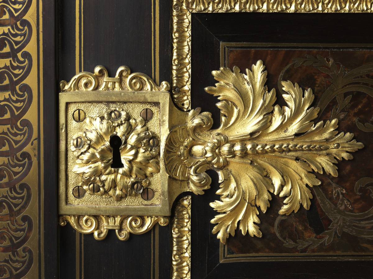 In a sumptuary declaration of 7 April 1700, Boulle’s workshop was recorded as containing nine such wardrobes, both in première- and contre-partie, suggesting that by this time they accounted for a significant proportion of his production.